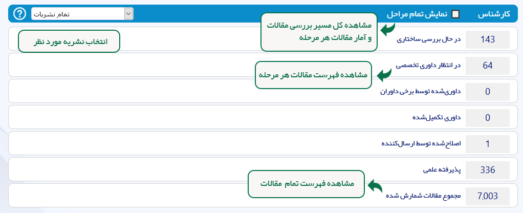 آمار وضعیت های مقالات: