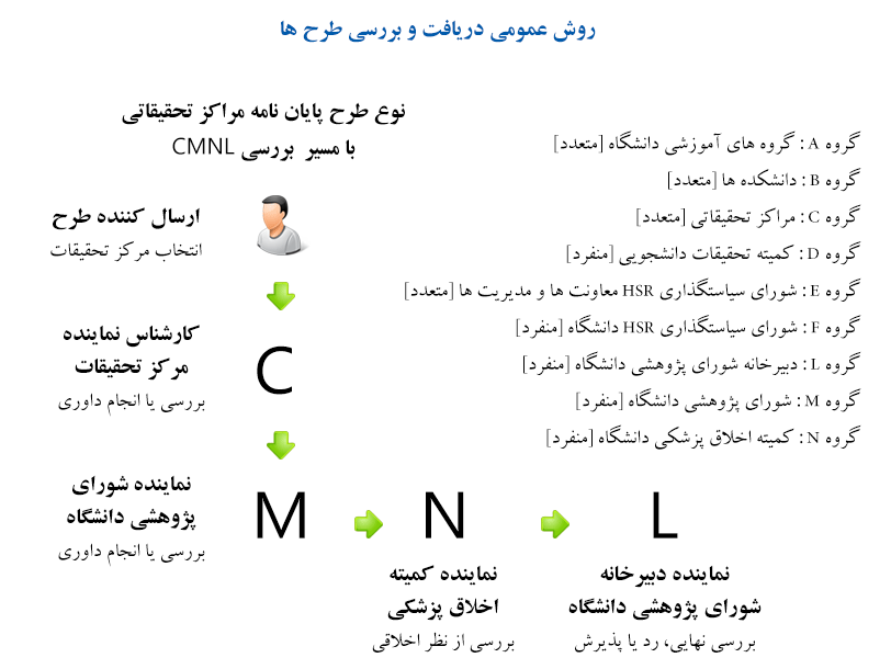 روش کار به این ترتیب است که برای هر دانشکده، مرکز تحقیقات، گروه آموزشی یا مدیریتی که قرار است طرح دریافت کند یک رکورد در سایت ایجاد می کنید. در حین تعریف این واحدهای سازمانی، اگر قرار است نماینده ای از همان مرکز در سامانه وارد شود و کار بررسی طرح ها را از طریق سایت انجام دهد، می توانید آن فرد یا افراد را هم به عنوان کاربر در سایت ثبت کرده (بخش مدیریت کاربران) و سپس کد یا آی دی کاربر را به عنوان کارشناس برای هر واحد ثبت کنید. به این ترتیب وقتی پروژه ای مربوط به واحد سازمانی مربوطه باشد، کارشناس مربوطه می تواند به آن دسترسی داشته باشد.