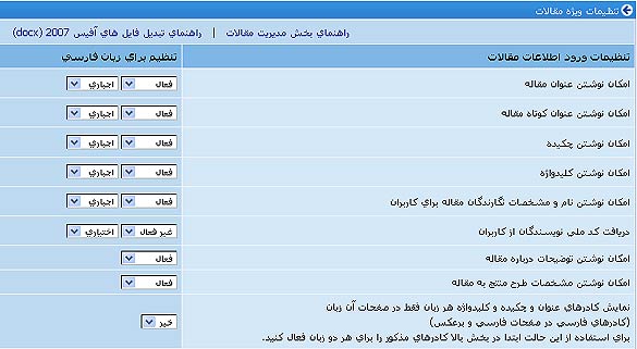 تنظیمات ورود اطلاعات مقالات