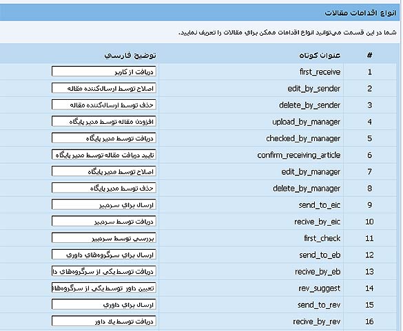 • امکان مشاهده‌ی جریان بررسى مقاله براى کاربران (همراه با تعیین مرحله)