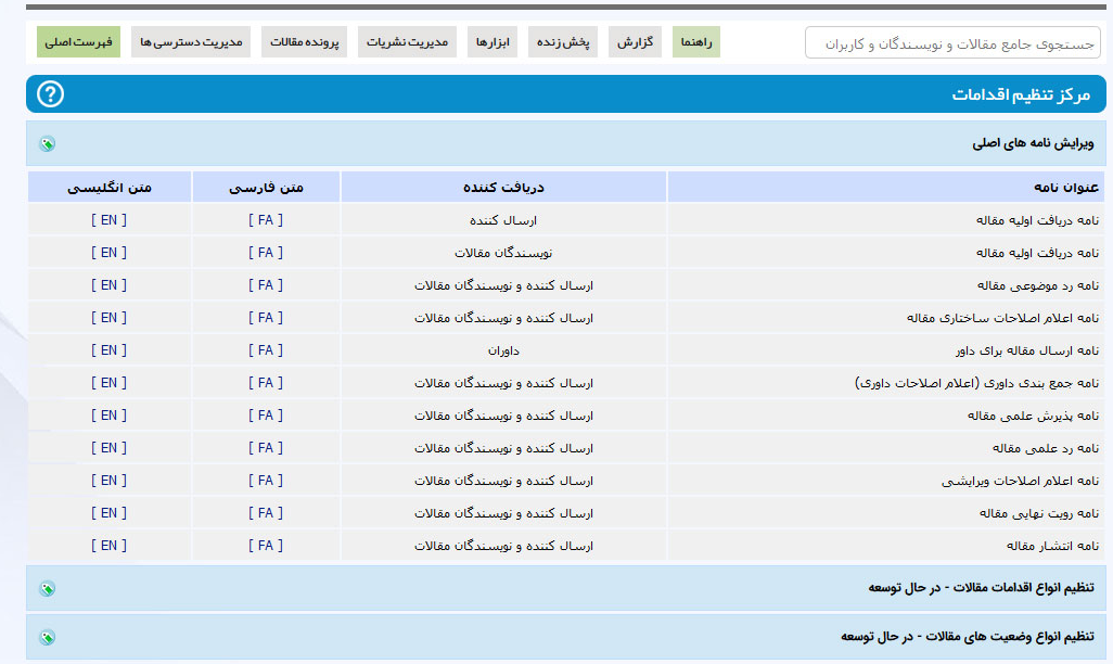 سردبیر یا دبیر علمی ارسال برای داوری در انتظار داوری تخصصی