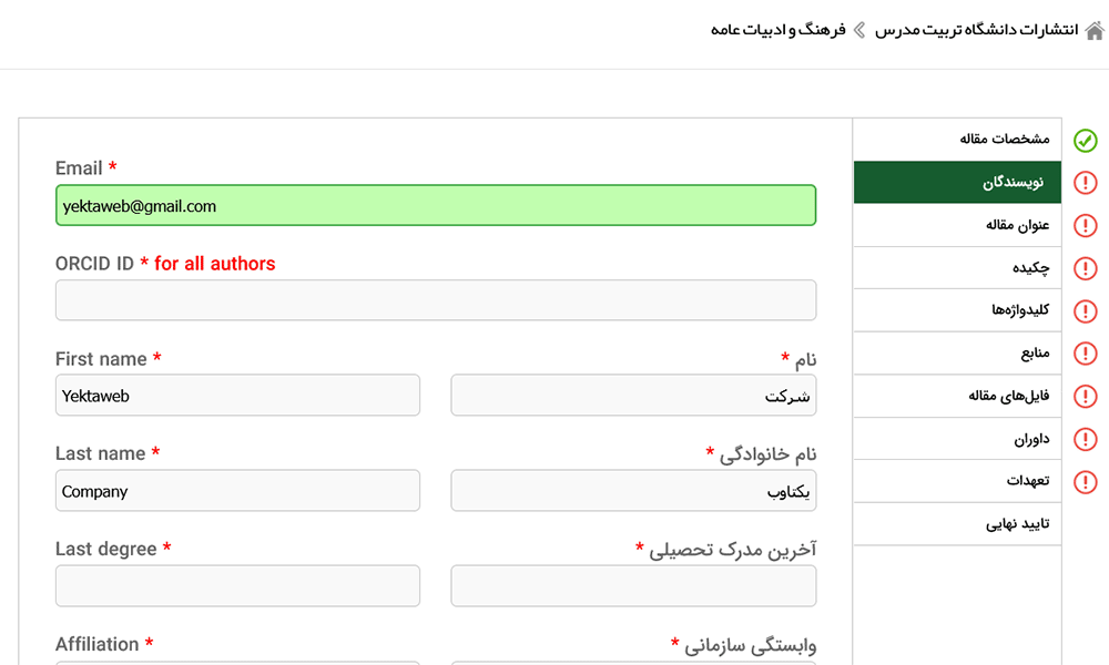 فرم ارسال مقاله به صورت حرفه ای: