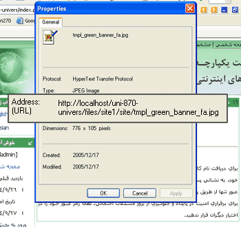 برای اینکه تصویری از تصاویر پایگاه خود را تغییر دهید، کافی است روی آن راست کلیک کنید و گزینه properties را انتخاب کنید. با انجام این کار میتوانید از محل قرار گیری آن فایل در پایگاه خود آگاه شوید و با کمک ماژول پوشهها و فایلها یا بخش تنظیمات قالب ها آن را عوض کنید.