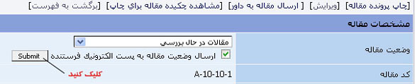 - اگر میخواهید توضیحی را برای فرستندگان همهی مقالات بفرستید یا تغییری را در همهی مقالات انجام دهید، باید به به بخش "مدیریت مقالات< تغییرات جمعی و اطلاع رسانی" بروید. این بخش بیشتر در همایشها کاربرد دارد.