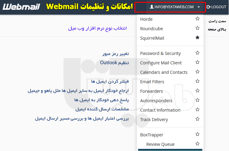 • نام کاربری ایمیل را به صورت کامل وارد کنید (info@yektaweb.com  نه info )