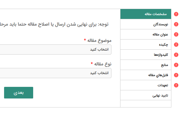 نسخه 3424 تاریخ 1396/4/31 : تغییرات جزیی در بخش ارسال مقاله