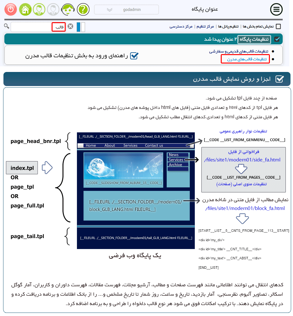 راهنمای تصویری توسعه و ویرایش قالب های مدرن در بخش تنظیمات قالب های مدرن اضافه شد.