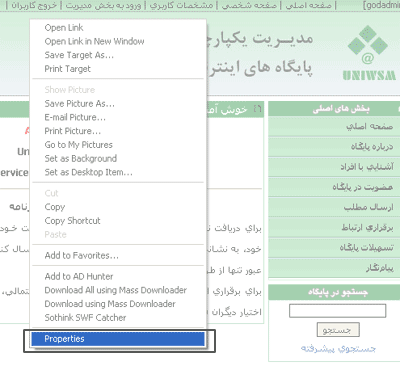 برای اینکه تصویری از تصاویر پایگاه خود را تغییر دهید، کافی است روی آن راست کلیک کنید و گزینه properties را انتخاب کنید. با انجام این کار میتوانید از محل قرار گیری آن فایل در پایگاه خود آگاه شوید و با کمک ماژول پوشهها و فایلها یا بخش تنظیمات قالب ها آن را عوض کنید.